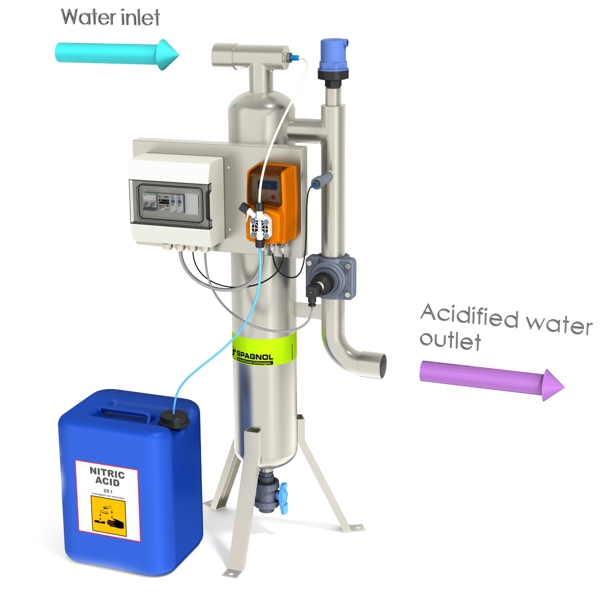 Ca-Remover Line is also equipped with alarms against over dosage or lack of acid, to protect your system and your crops. It must be powered with a 230V single-phase electric voltage and is produced in 2 sizes: DN50 for flow rates up to 20 m3/h and DN80 for flow rates up to 40 m3/h. For both versions the maximum pressure allowed is 5 Bar (other pressures on request).